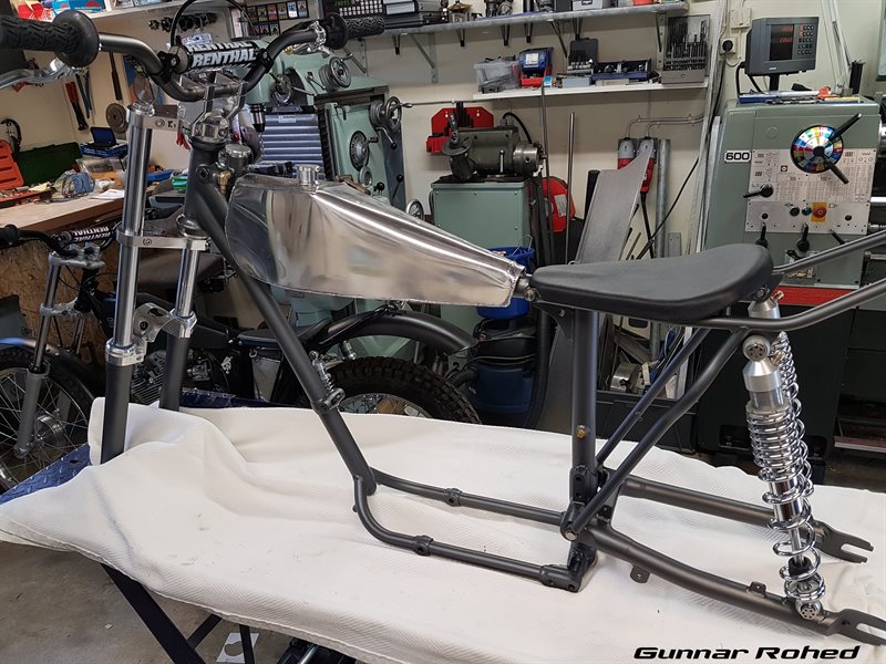 On this bike I change same parts of the frame to get a clean inside to use the frame as oil tank, a wider swing and a narrow rear sub frame. I do saved some kilo as well.