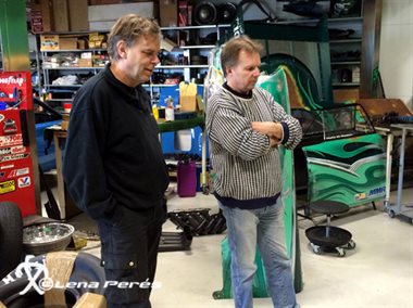Mats and Jan Gunnarsson (teacher of the students) talking about racing, maybe?